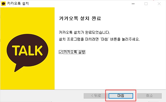 카카오톡 설치가 완료되었습니다. 설치 프로그램을 마치려면 '마침'버튼을 눌러주세요.