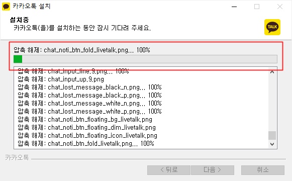 4. 설치가 완료되면 100% 진행바가 가득 차게 됩니다.