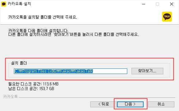 2. 카카오톡을 설치할 폴더를 선택해 주세요.