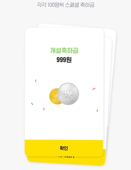 카카오뱅크 저금통을 개설하면 1원부터 999원까지 랜덤 지급