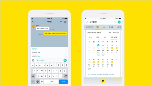 검색도 이젠 카카오안에서 해보세요! 카카오 채팅중에 궁금하거나 공유하고 싶은 내용이 있다면 채팅방에서 #버튼을 눌러서 실시간으로 검색을 해보세요. 우리가 모든걸 알 수 없는대신 우리에겐 카카오의 검색 기능 #버튼이 있습니다. 보다 편리하고 빠르고 원하는 정보를 찾아서 쉽게 공유 할 수 있습니다.