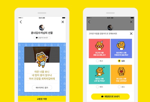카카오톡 선물하기기능은 평소 쉽게 전달하지 못했던 마음을 카카오톡으로 전달할 수 있습니다. 부담가지 않는 선물을 카카오에서 추천도 해주고 가격대별로 추천할만한 선물들이 다양하게 입점되어 판매되고 있습니다. 감동은 더하고 선물은 보다 특별하게 카카오의 선물하기 기능으로 평소 전하지 못한 고마움을 전해 보시길 바랍니다.