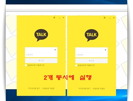 카카오톡 사용할때 PC에서 계정 2개를 사용해야할때 사용하는 필수 유틸리티 입니다. 1개의 계정으로는 로그인이 동시 로그인이 안되기 때문에 불가능하고, 계정이 2개 일때는 각각 로그인을 할 수 있습니다.