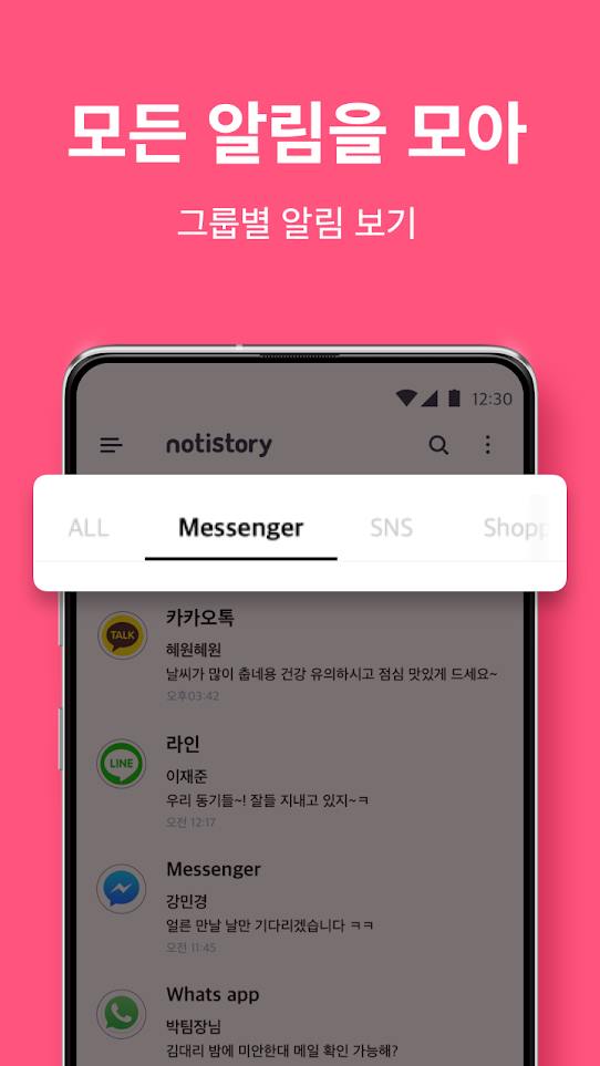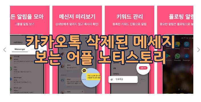 ■ 노티스토리 소개 중요한 알림을 실수로 지워버렸던 경험이 있으신가요? 모든 앱 실행 없이 알림 내용만 확인 하고 싶으신가요? 이제 모든 알림을 한 눈에 볼 수 있는 노티스토리(notistory)로 관리하세요. ■ 주요 기능 1. 모든 메신저 알림 모아보기 메신저를 실행하지 않고 [읽음]표시 없이 즉시 확인 가능합니다. 2. SNS 앱 알림 지원 기본 전화, SMS메시지, 이메일 알림 뿐만 아니라 Gmail, Facebook, Twitter, Messen