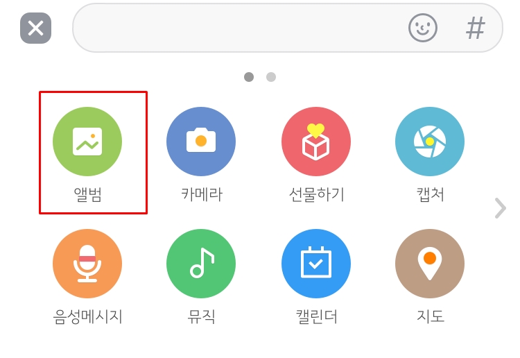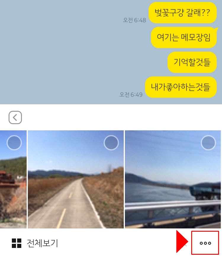 채팅방에서 사진보내기를 해본다. 앨범을 눌러보면 오른쪽 하단에 점세개가 보일 것이다. 더보기 기능인데 클릭을 해주면 아래의 이미지 처럼 사진이나 동영상의 화질을 선택 할 수가 있습니다. 일반화질로 보낼것인지 고화질로 보낼것인지 원본으로 보낼 것인지, 동영상도 마찬가지입니다.