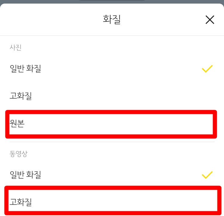 이렇게 설정을 원본이나 고화질로 바꾼다면 원하는 화질로 카카오톡에서 사진이나 영상을 전송할 수 있습니다. 고화질의 영상들을 이제 카카오톡에서 만나 보시길 바랍니다.
